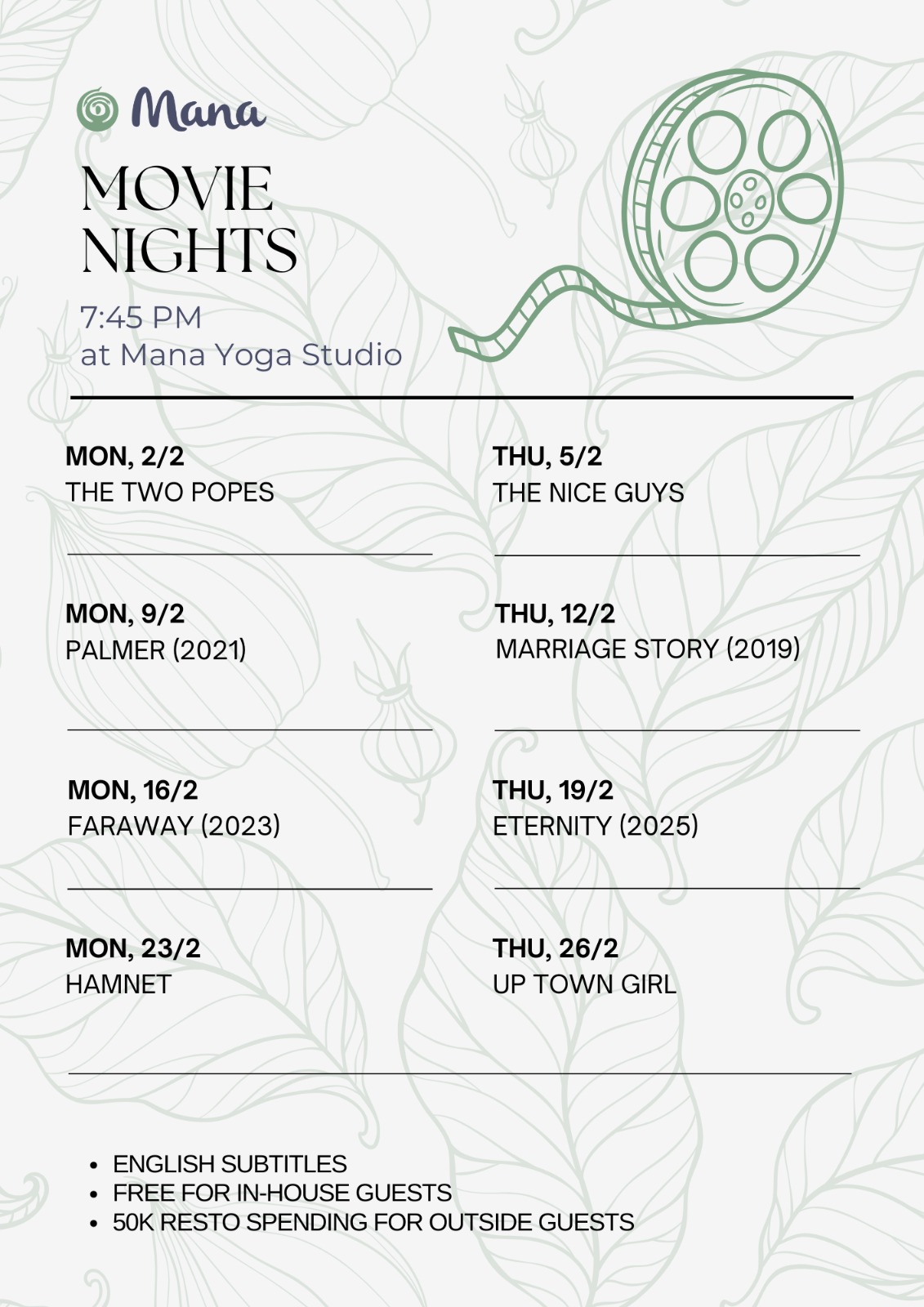 Screening times start at 7.45 PM